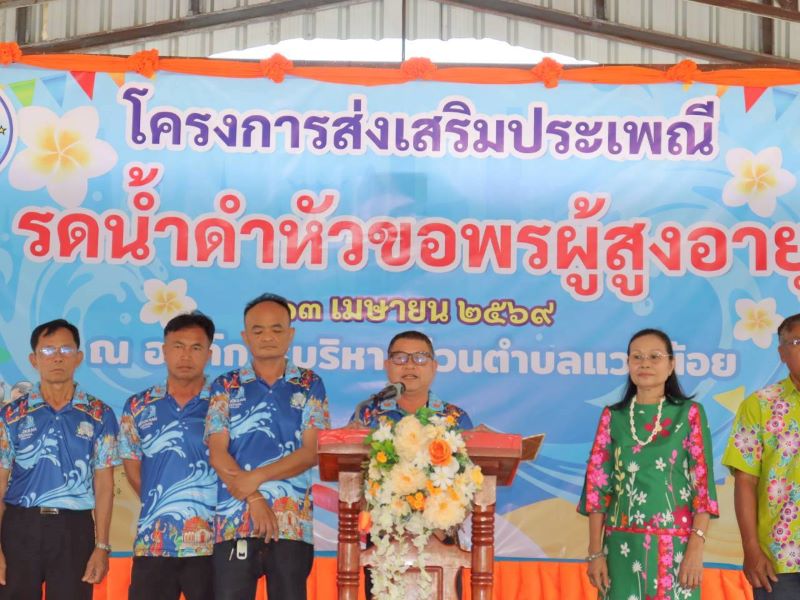วันที่ 13 เมษายน 2569 นายจำนงค์ หน่ายโสก นายกองค์การบริหารส่วนตำบลแวงน้อย พร้อมด้วยคณะผู้บริหาร สมาชิกสภาฯ ข้าราชการ พนักงาน ลูกจ้าง ประชาชนชาวตำบลแวงน้อยร่วมกันจัดโครงการส่งเสริมประเพณีรดน้ำดำหัวขอพรผู้สูงอายุ ณ องค์การบริหารส่วนตำบลแวงน้อย