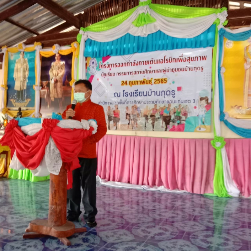 องค์การบริหารส่วนตำบลแวงน้อยร่วมกับโรงเรียนบ้านกุดรู จัดโครงการออกกำลังกายเต้นแอโรบิกเพื่อสุขภาพ