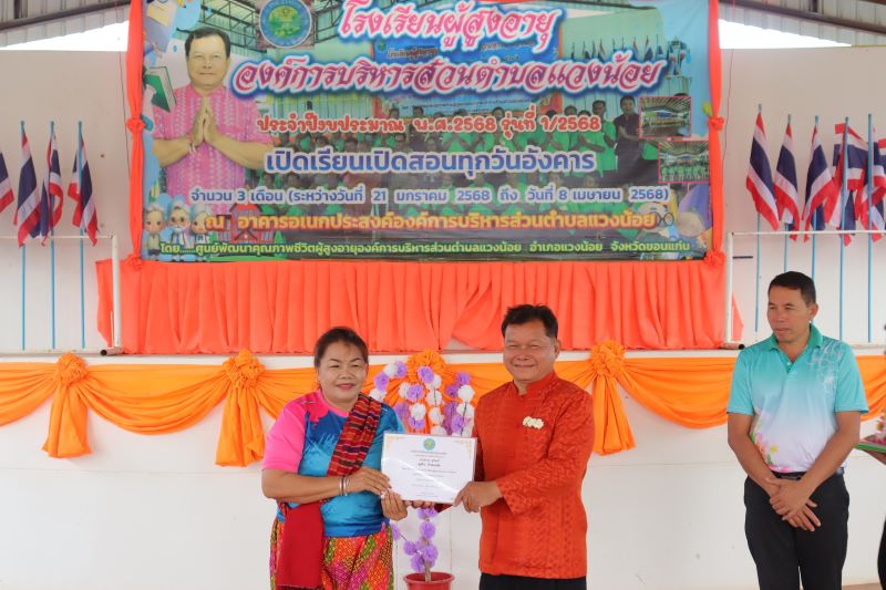 พิธีปิดโรงเรียนผู้สูงอายุ องค์การบริหารส่วนตำบลแวงน้อย ประจำปีงบประมาณ พ.ศ.2568 รุ่นที่ 1/2568 โดยมีการเปิดสอนทุกวันอังคารจำนวน 3 เดือนระหว่างวันที่ 21 มกราคม 2568 ถึงวันที่ 8 เมษายน 2568 ณอาคารอเนกประสงค์องค์การบริหารส่วนตำบลแวงน้อย